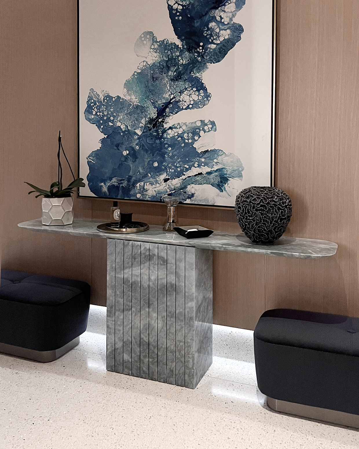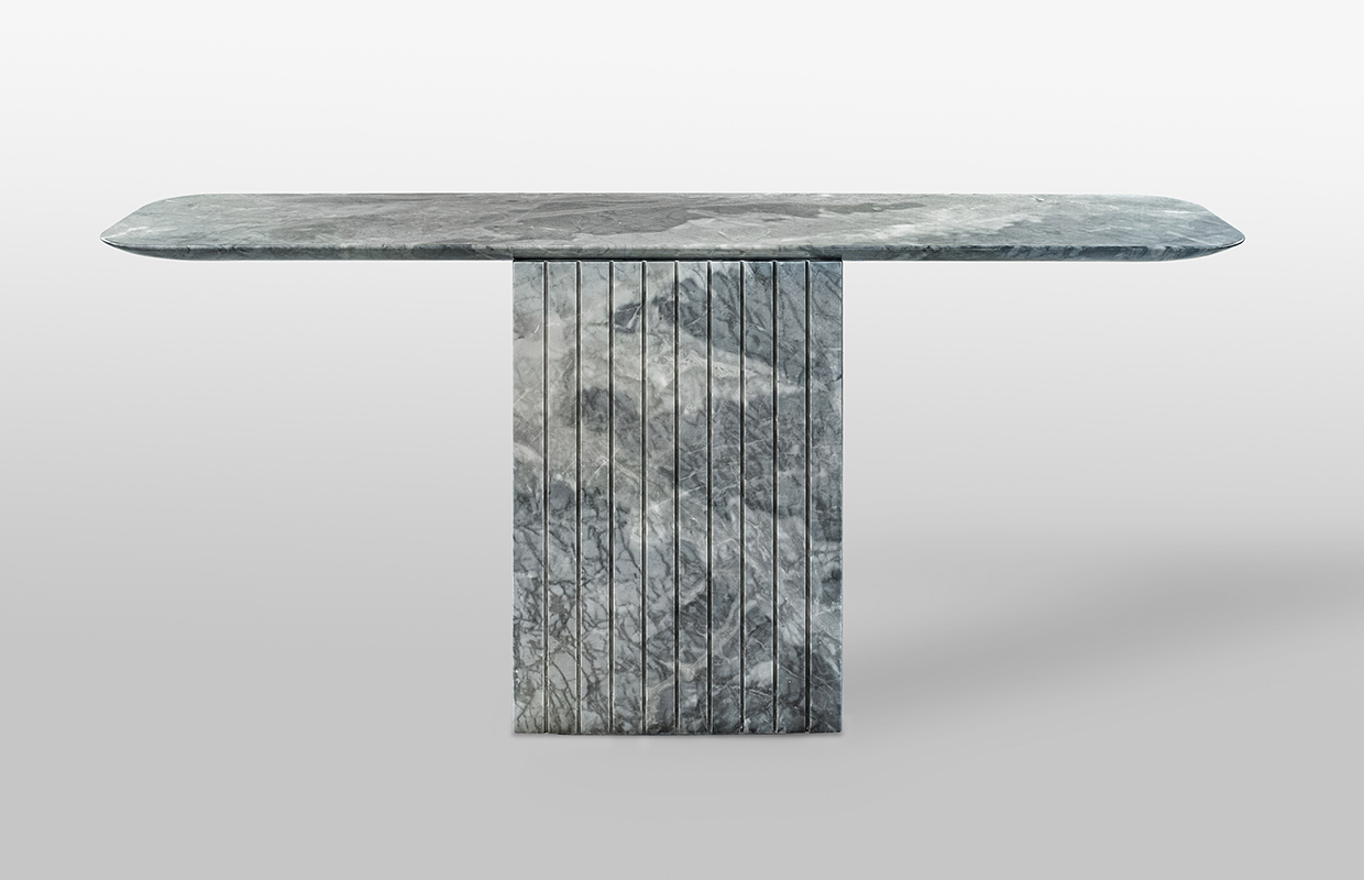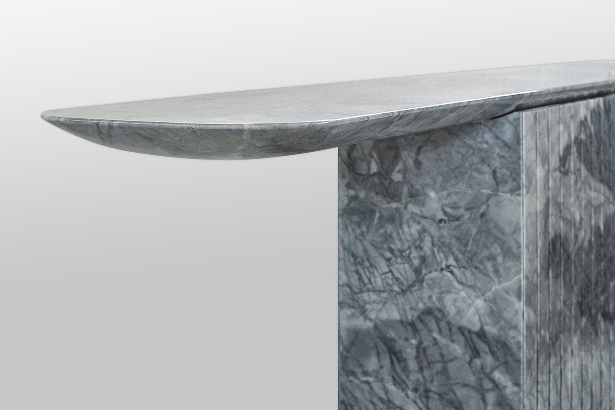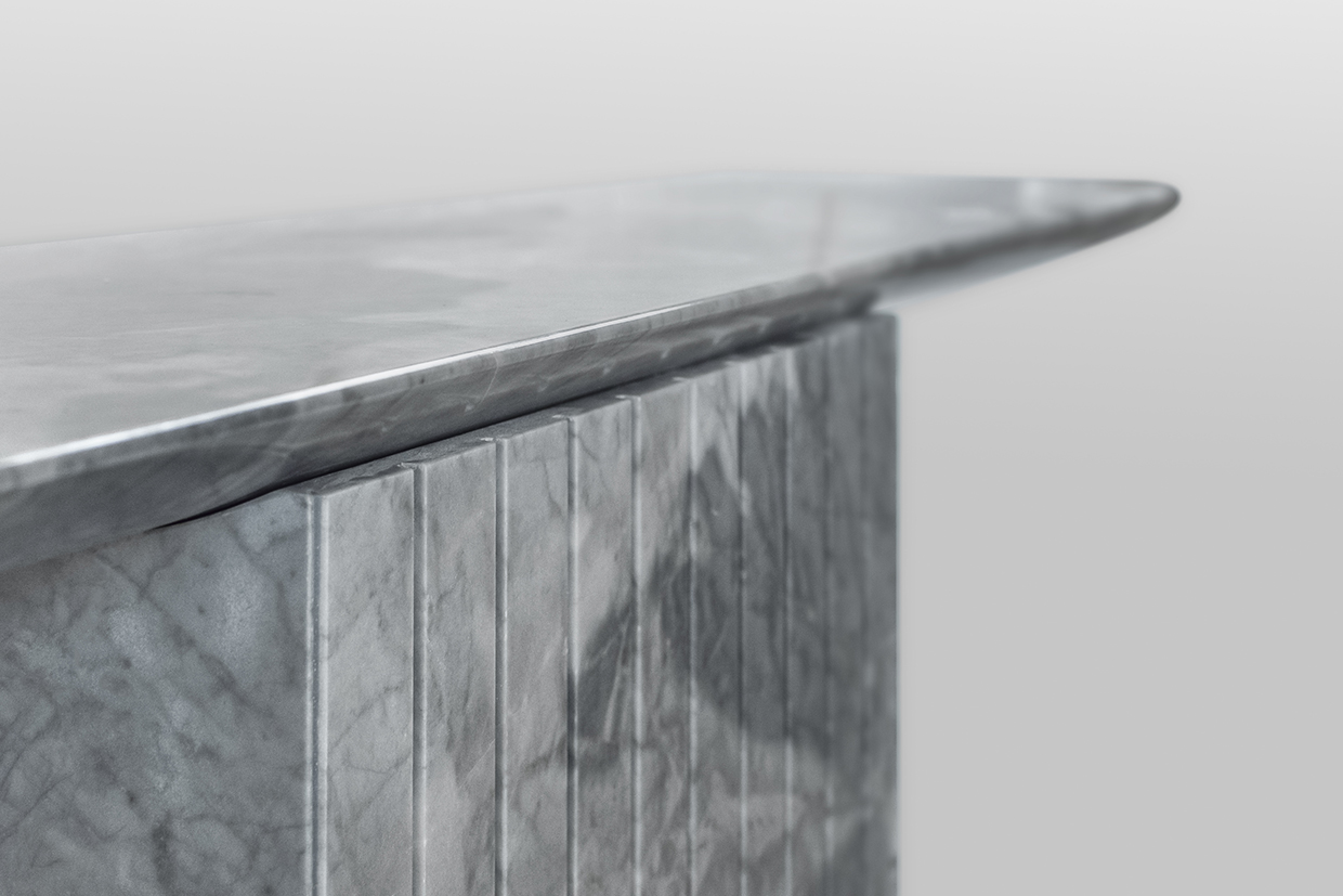 on a sturdy base made from the same marble block. The final result is an elegant equilibrium between the parts.