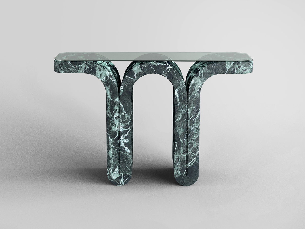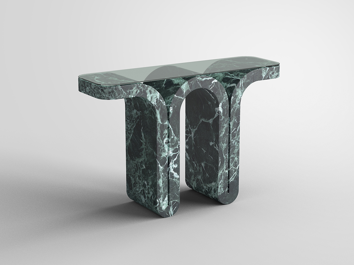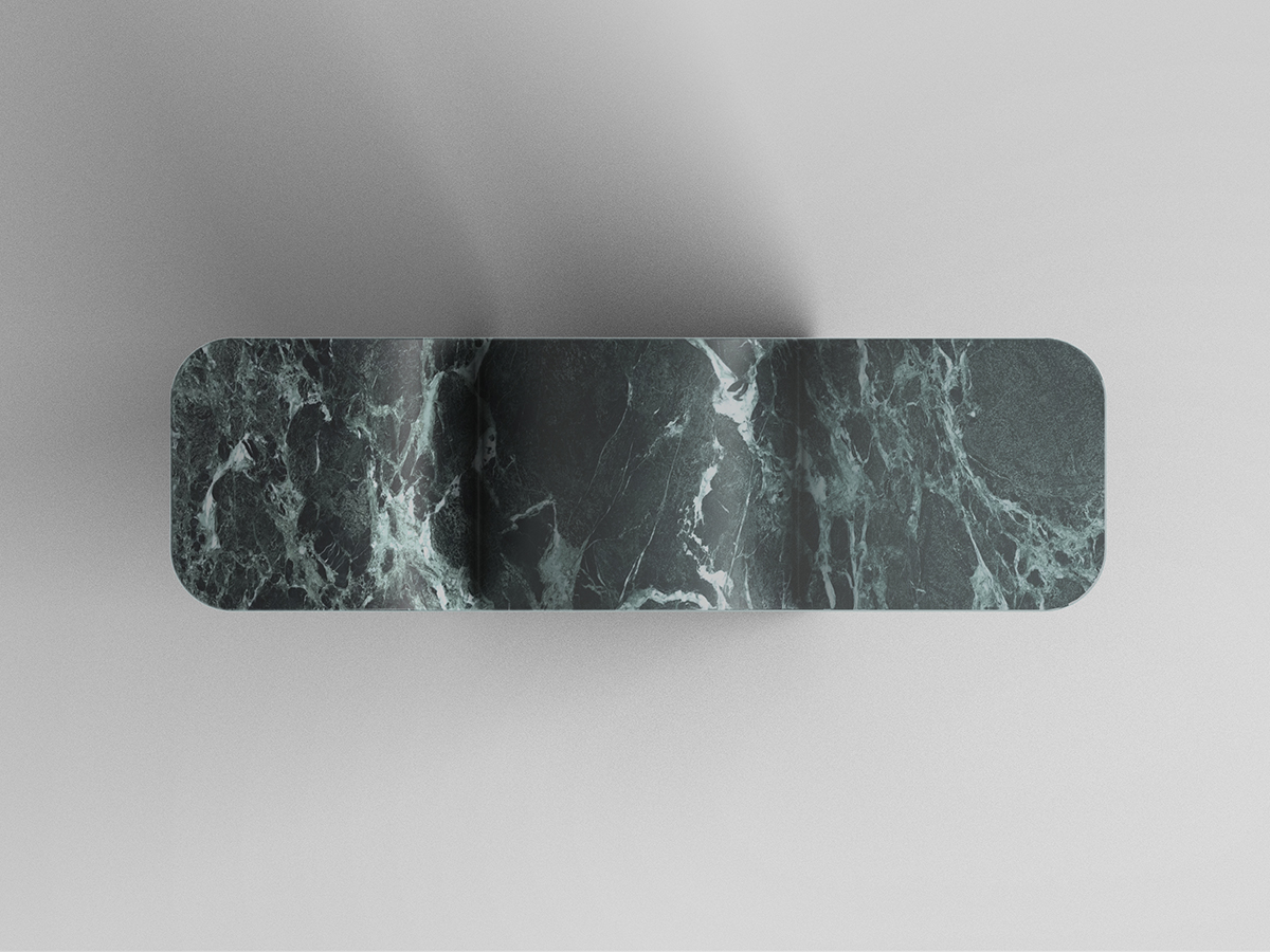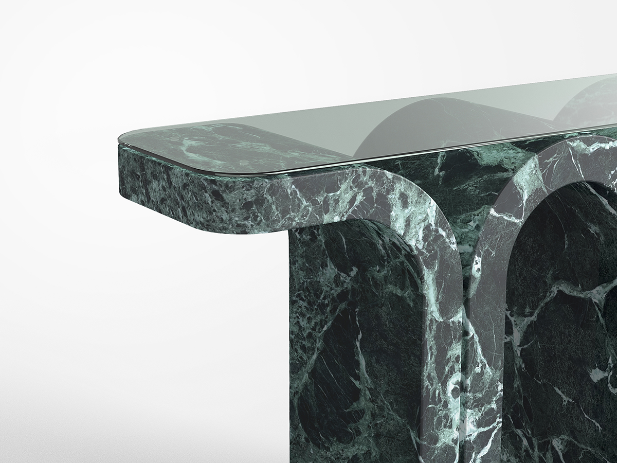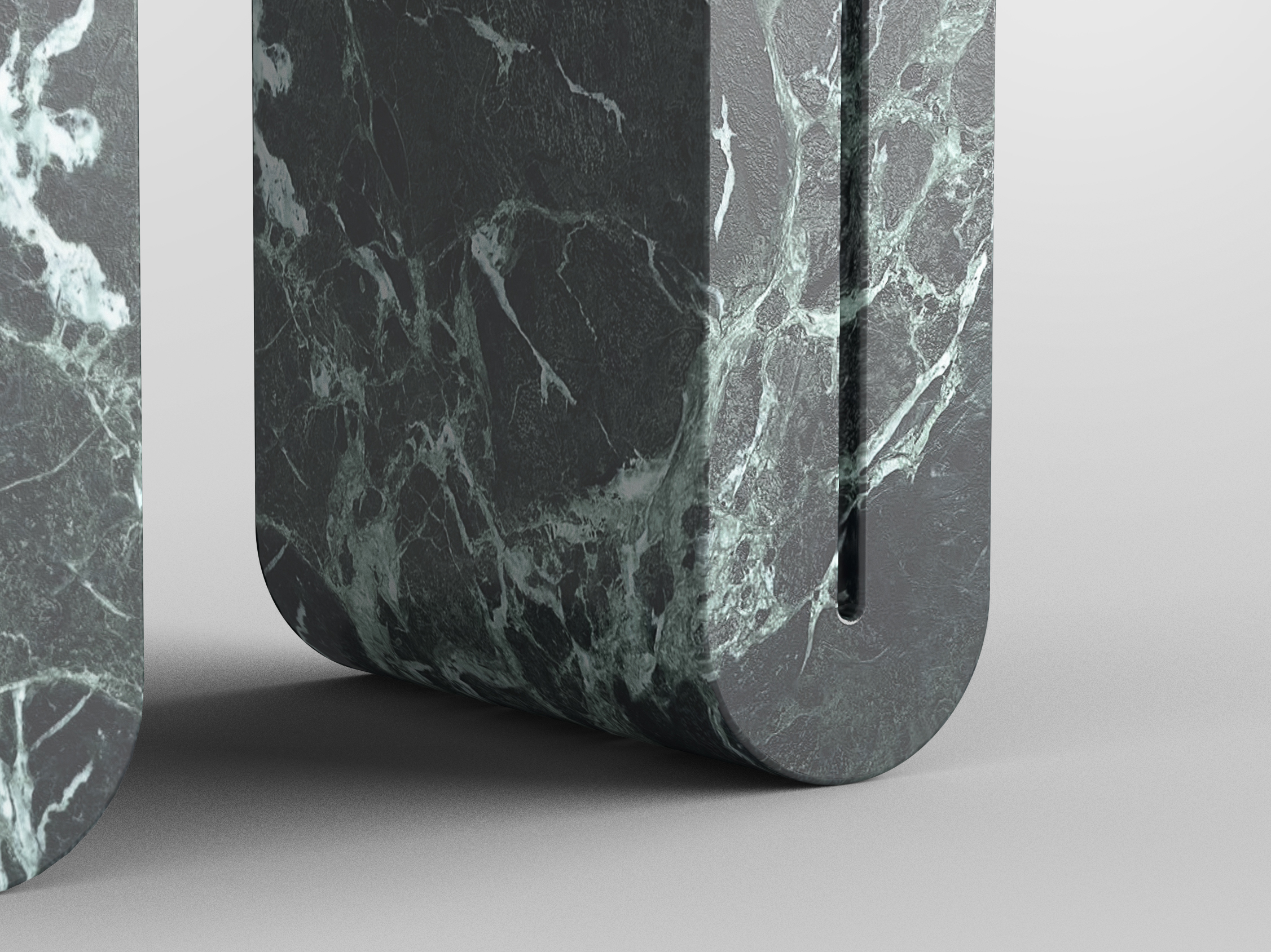 Carved from a block of natural stone and manually honed. Different stones and glass colors on demand.