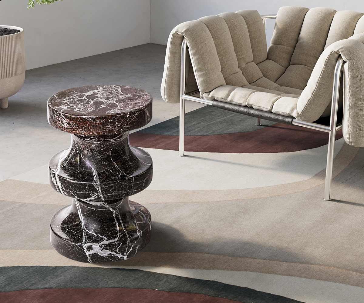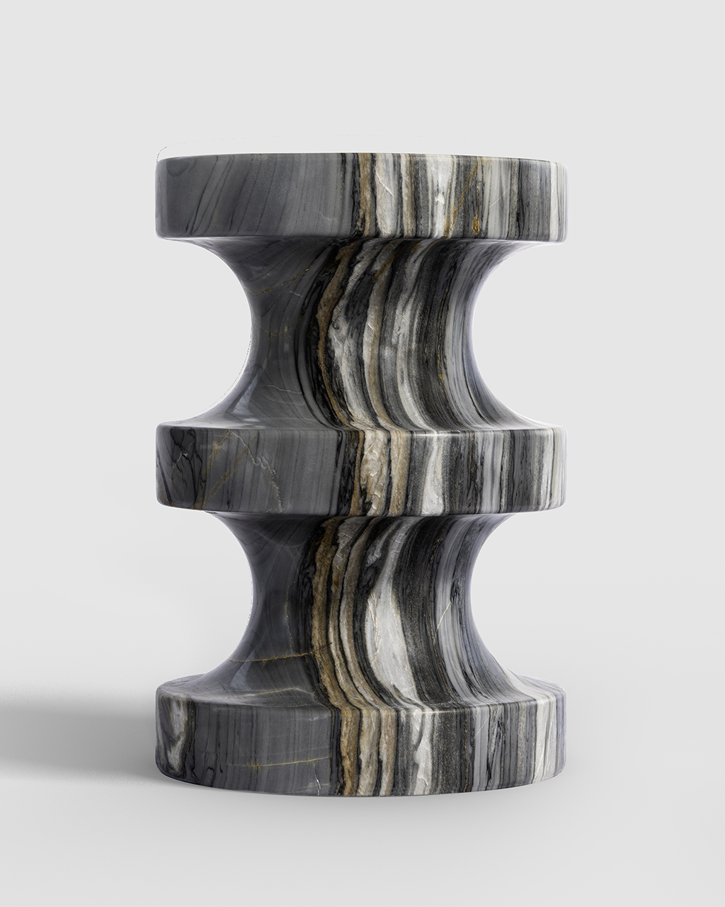 TYPOLOGY: Stool MATERIAL: Natural Stone DIMESIONS: D 12”[30 cm] x H 18[46 cm]